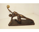 P1035828 Poly. Vrouwelijk turnster met gouden bal op statief. LxBxH : 32x14x24 cm.