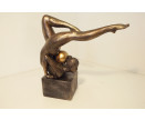P1035829 Poly. Vrouwelijk turnster in balans met gouden bal in haar nek Op rechthoekige basis. LxBxH : 25x9x25 cm.