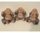Poly. Dikbuik boeddha horen-zien-zwijgen groen-blauw met spiegeltjes. Hoogte : 13 cm. Set van 3.