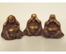 Boeddha lucky horen-zien-zwijgen brons mini. Hoogte : 7 cm. Set van 3.