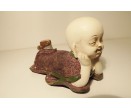 Poly. Liggende, denkend paarse baby monk 17 x 10 cm.