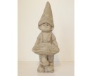 Staand kabouterjongetje met blad lichtgrijs. Hoogte : 40 cm.