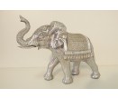 P1035697 Poly. Olifant zilver met dekkleden. LxH : 36x26 cm.