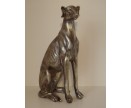 P1035634 Poly. Zittende hond zilver. Hoogte : 40 cm.