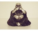 Boeddha lucky mini "zwijgen". Zwart-zilver. Hoogte 7 cm.
