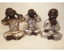 Monnik horen-zien-zwijgen. Zwart-zilver. Hoogte : 15 cm. Set van 3.