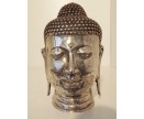 0130009 Brons hoofd boeddha zilverkleurig. Hoogte : 18 cm.