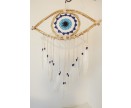 Dreamcatcher knitted blue eye oval. Length : 70 cm.