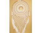 Dreamcatcher. Rieten XL dreamcatcher gehaakt met tree of life in het midden met houten kralen en witte veren. Diameter 53 cm., lengte 140 cm.