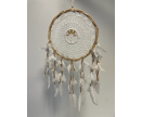 Dreamcatcher. Tree of life dreamcatcher 25 cm. diameter. In gehaakt middelpunt met kleine houten kraaltjes en witte veren.