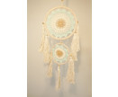 8530126 Dreamcatcher. Dubbele dreamcatcher babyblue met witte kwastjes en houten kralen. Diameters 12 en 17 cm., lengte +/- 55 cm.