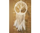 Dreamcatcher. Witte dreamcatcher "Tree of Life" met houten kraaltjes, diameter +/- 16 cm.