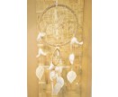 8530120 Dreamcatcher. Klassieke dubbele (diameter 25 cm. en diameter 12 cm.) van touw met witte veren en bladeren van stof.