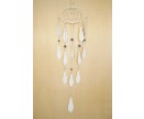 Metal hanging decoration. White metal dreamcatcher eye of God with blue marbles and white feathers. Length 95 cm. Per 6 stuks verpakt. Prijs is per 6 stuks.