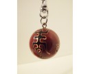 7102043 Sleutelhanger emaille bal met bel. Rood met chinese tekens. Diameter 3 cm.
