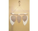 8530200 Hanging decoration. Balinese bruin-witte natural look hangende bladeren gemaakt van stof aan houten stick. 50x50 cm.