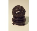 Hout. Yzerhouten bol met zodiac motief lakzwart 3,5 cm. diameter op houten voetje.
