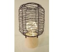 L21632B Led lamp. Led lamp tafelmodel op houten basis (diameter 7 cm.) met cilindrische wirwar van zwart draadstaal (diameter 13 cm.). Totale hoogte 21 cm. Op 3 AAA batterijen (niet meegeleverd).