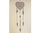 M191948 Metal hanging decoration. Donkergrijs metalen hart met boombladeren en houten kralen. Lengte : 93 cm. Per 6 stuks verpakt. Prijs is per 6 stuks.