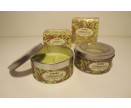 Geurkaars Goloka Citronella in versierd blikje (diameter 8 cm./ hoogte 4 cm.) met venstertje. Verpakt in mooi kartonnen doosje 8,5x8,5x4,5 cm.