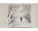 OP170606B Oilpainting. Stel wandelend in winters park. 80x80 cm.
