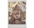 Olieverfschilderij. Serene boeddha in bloemenweelde van lotusbloemen. Achtergrond met goudtinten. Klassieker. 90 x 120 cm.