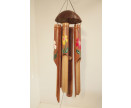 Gong. Bamboe Batik klassieke windgong met bloemenopdruk (geel, wit en rood) op 6 bamboepijpen aan halve cocosnoot, totale lengte 100 cm.