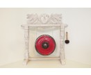 2030040 Gong. Staande klassieke gong. Balinese draak liggend op houten frame (70x57 cm.) met metalen gong (diam. 30 cm.).