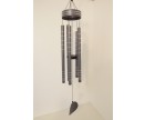 Gong. Lichtgrijze windgong met zilveren ringen en 5 gestemde pijpen en ronde klepel. Lengte : 100 cm.