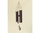 Gong. Luxe moderne gestemde windgong met 6 zwarte pijpen en zilveren basis en klepel. Lengte : 85 cm.